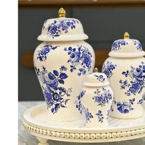 گلدان جینجر جار سرامیکی-طرح گل آبیناموجود