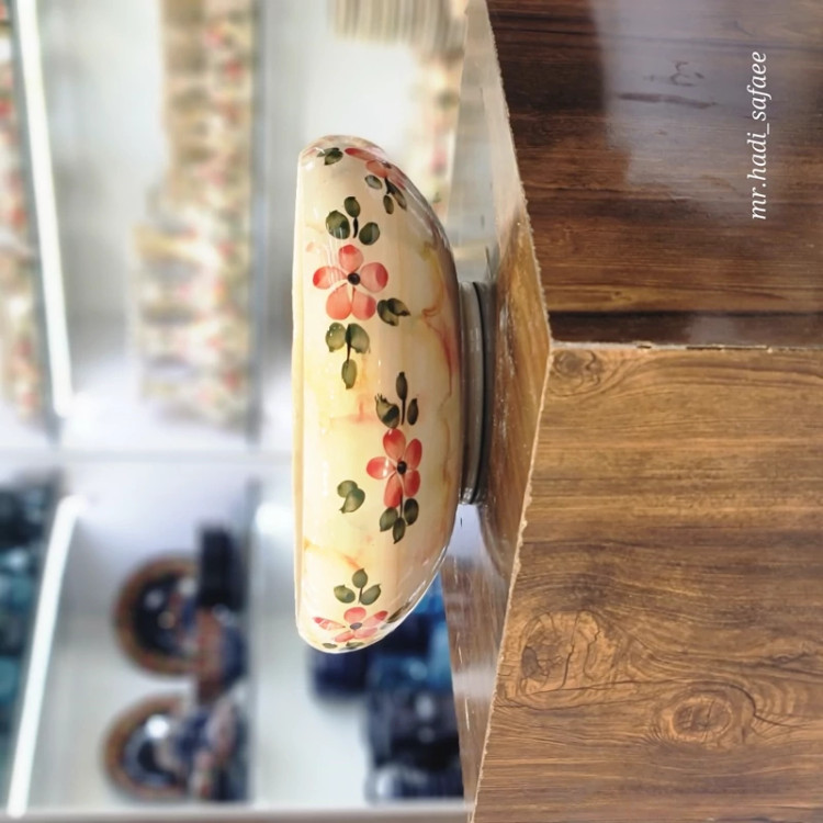 * جنس بدنه : سفال لعاب دار . تمام کار دست * نقوش بدنه : نقاشی شده توسط دست اساتید بزرگ نقاشی سنتی. قابل سفارش به صورت تکی و به تعداد دلخواه می باشد . * نکاتی در مورد ظروف مصرفی و دکوری اپامه -نقوش روی ظروف در پخت سوم اعمال شده و تا دمای ۷۵۰ درجه پخت شده و ثابت میباشد _ بدنه محصولات از جنس سفال می باشد . _ بدنه محصولات از بیرون لعاب خورده تا قابل شست و شو و برای مصرف شما عزیزان کاملا بهداشتی باشد . _ سفارش شما در بسته بندی مناسب به دست شما میرسد تا محصول هیچ گونه آسیب فیزیکی نبیند . _ قابل سفارش در طرح و رنگ داخواه شما ، برای مشاوره و ساخت محصول سفارشی با ما تماس بگیرید جنس بدنه : سفال لعاب دار . تمام کار دست نقوش بدنه : نقاشی شده توسط دست اساتید بزرگ نقاشی سنتی. قابل سفارش به صورت تکی و به تعداد دلخواه می باشد . * نکاتی در مورد ظروف مصرفی و دکوری اپامه -نقوش روی ظروف در پخت سوم روی لعاب اعمال شده و تا دمای ۷۵۰ درجه پخت شده و ثابت میباشد _ بدنه محصولات از جنس سفال می باشد . _ بدنه محصولات از بیرون لعاب خورده تا قابل شست و شو و برای مصرف شما عزیزان کاملا بهداشتی باشد . _ سفارش شما در بسته بندی مناسب به دست شما میرسد تا محصول هیچ گونه آسیب فیزیکی نبیند . _ قابل سفارش در طرح و رنگ داخواه شما ، برای مشاوره و ساخت محصول سفارشی با ما تماس بگیرید